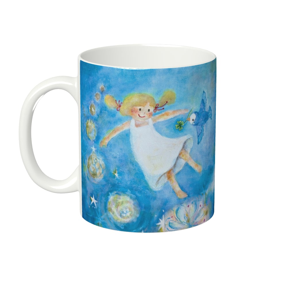 絵本「こころちゃんとブルーの7つの魔法のタネ」の絵のマグカップです。